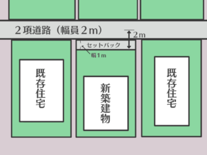 | セットバック | 道路幅を確保するために建物や塀を後退させること | 新築・建て替え時に必要かどうか |